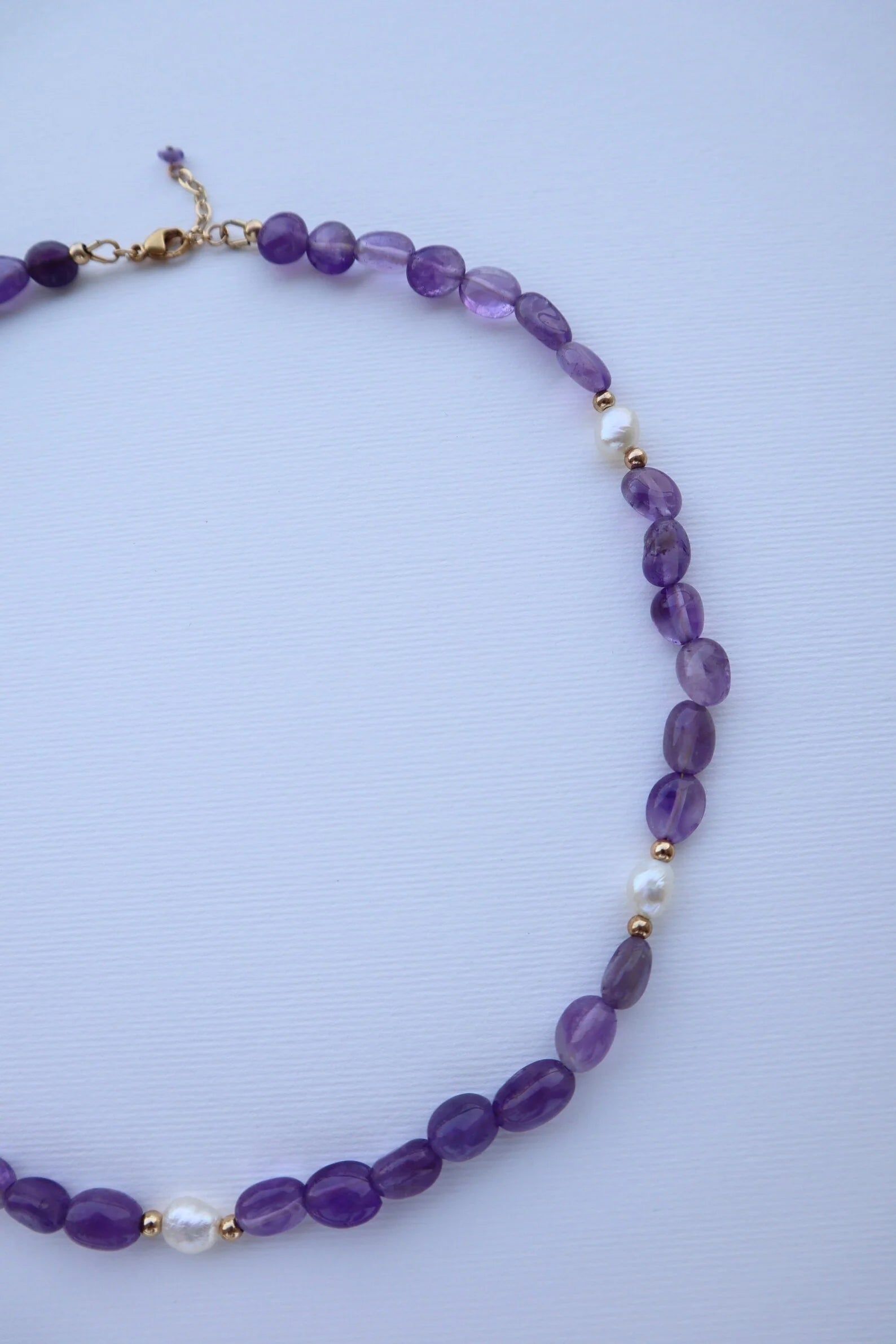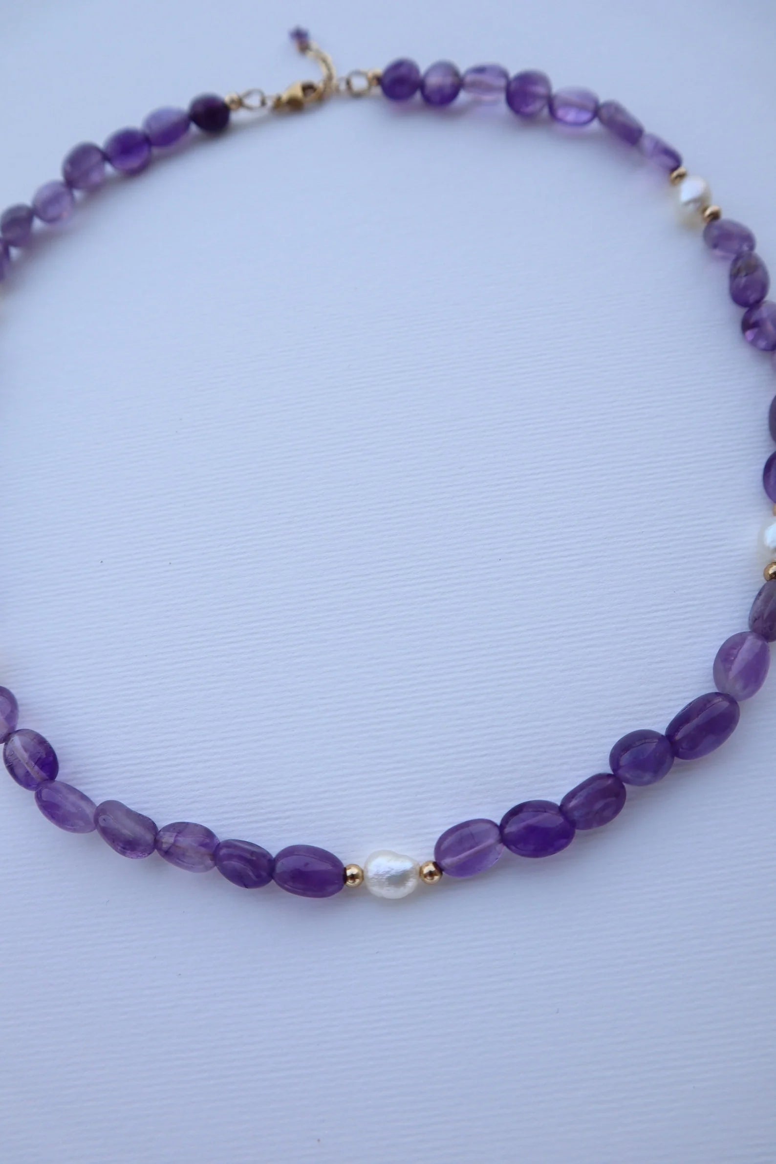 Amethyst & Freshwater Pearls Necklace | Protection & Peace
