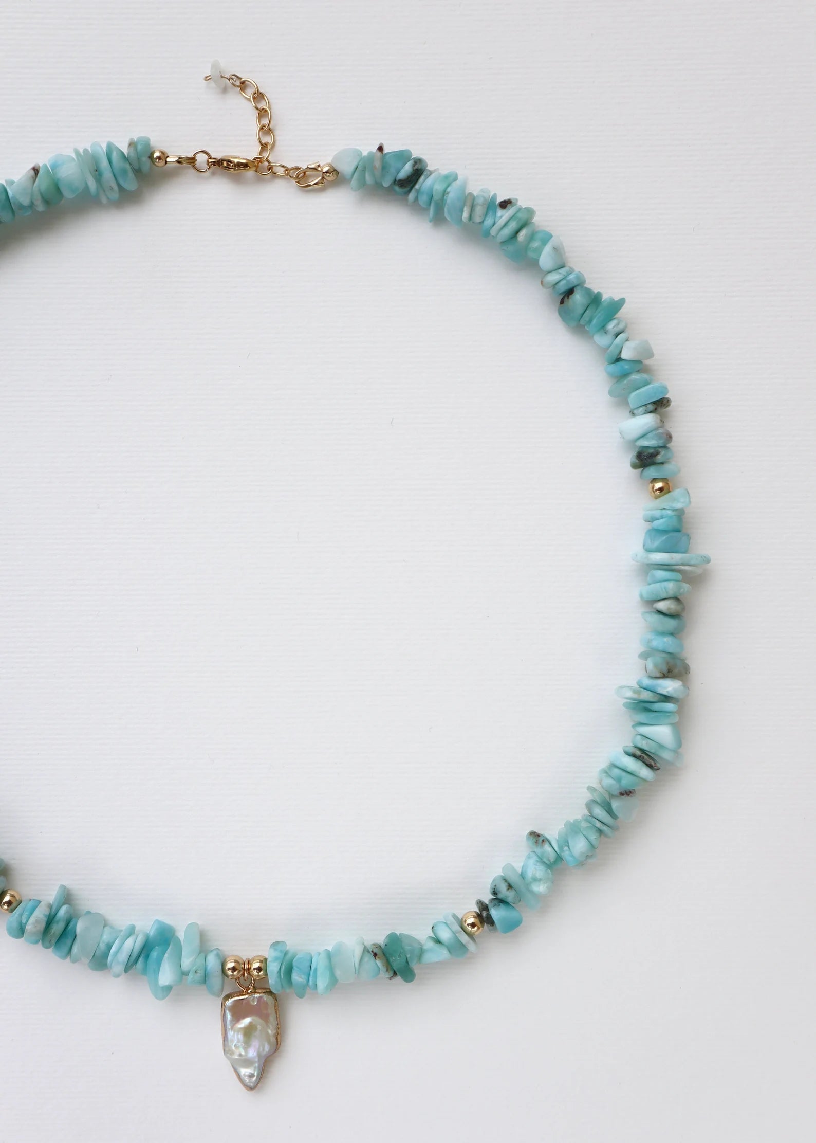 Aquamarine Necklace | Mother of Pearl Pendant | Clarity & Intuition