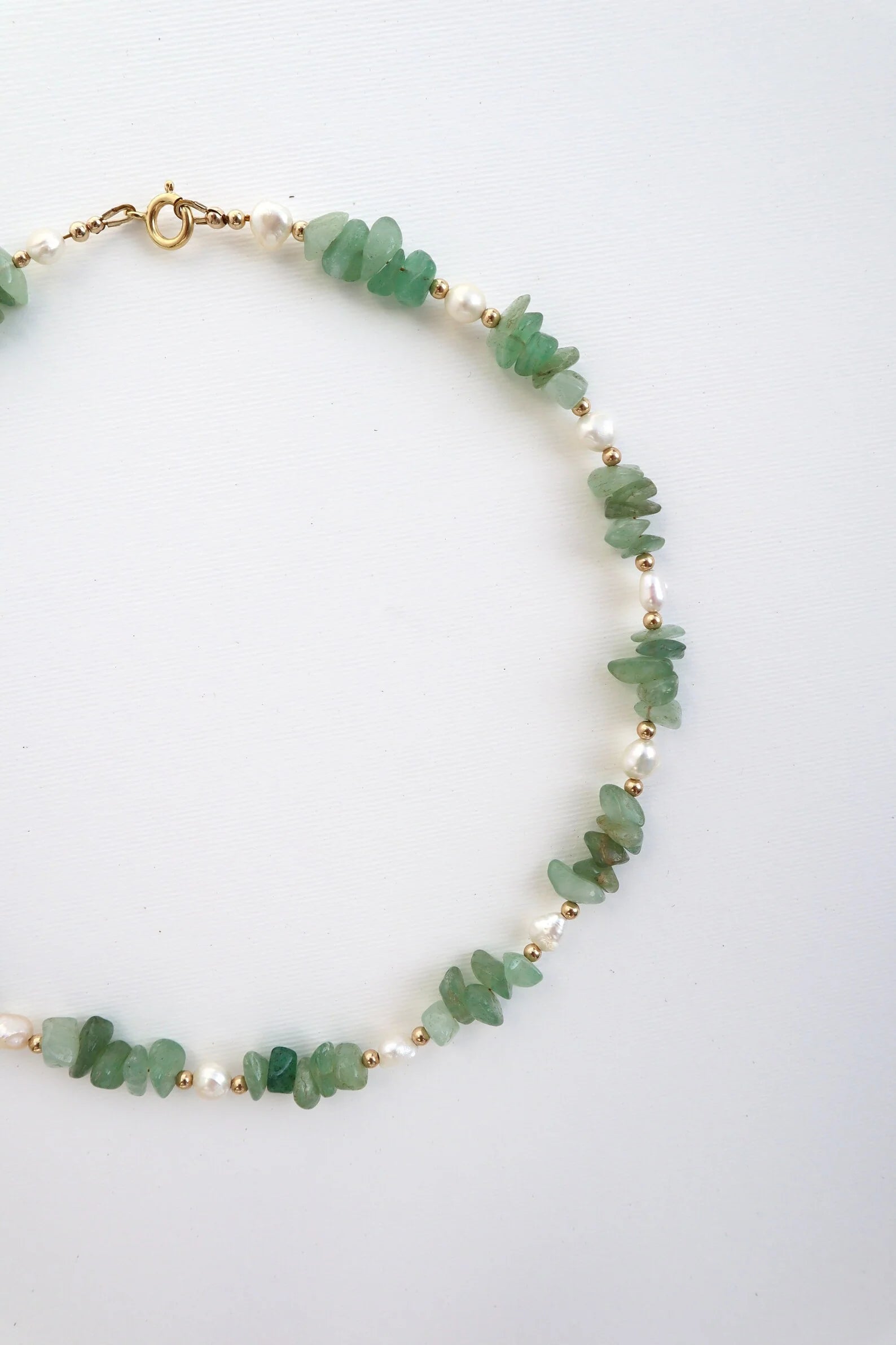 Green Aventurine Necklace | Freshwater Pearl | Luck & Emotional Balance