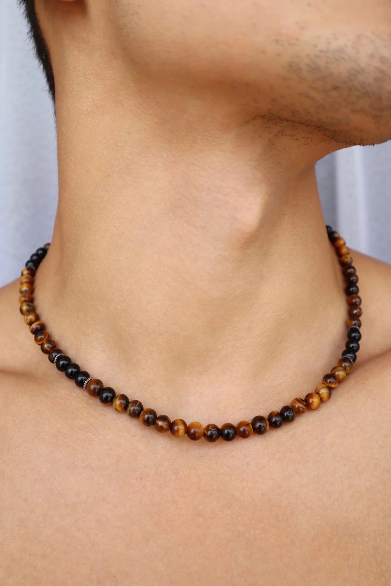 Mens Tiger’s Eye & Onyx beaded Necklace | Confidence & Protection
