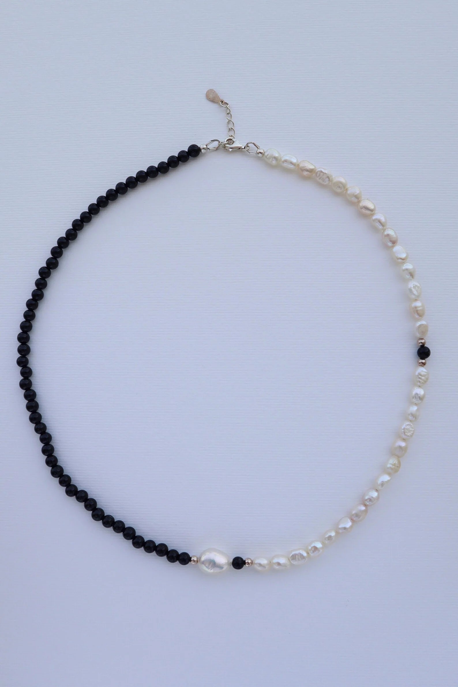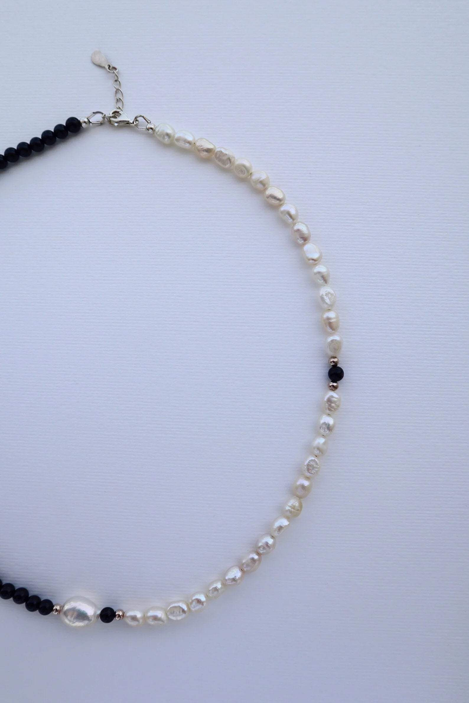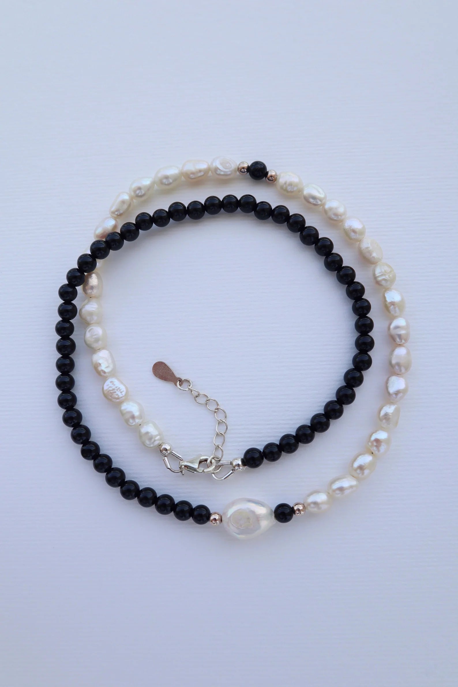 Onyx & Freshwater Pearl Necklace | Protection & Emotional Balance